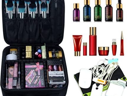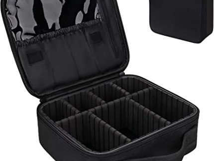 Relavel Travel Makeup Train Case Makeup Cosmetic Case Organizer Portable Artist Storage Bag with Adjustable Dividers for Cosmetics Makeup Brushes Toiletry Jewelry Digital Accessories Black