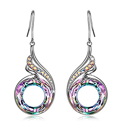 Dangle earrings featuring long ear wire with iridescent stones and pink rose drop embellished with delicate mixed stone accents. Earrings are set in gold-tone metal with a shepherds hook closure.