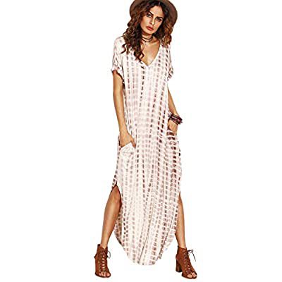 MakeMeChic Women's Boho Maxi Short Sleeve Split Pockets Tie Dye Long Dress $28.99