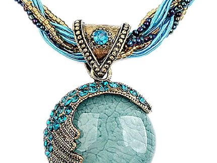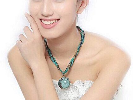 Harlorki Women Lady Retro Vintage Bohemian Style Twist Woven Rope Chain Turquoise Rhinestone Pendant Collar Necklace Fashion Jewelry
