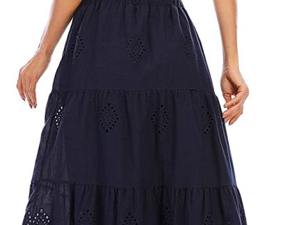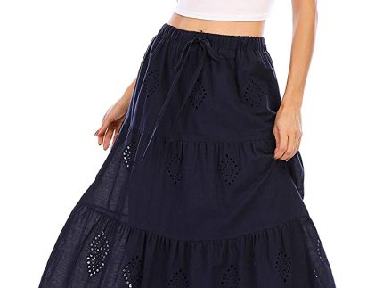 Love Welove Fashion Women’s Summer 2023 Casual Solid Color Boho Embroidered Tiered Maxi Skirt
