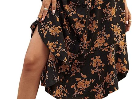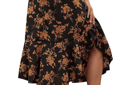 SheIn Women’s Floral Print Button Front Ruffle Hem High Waist A Line Midi Skirts