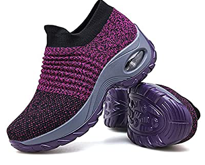 Women’s Walking Shoes Sock Sneakers Slip on Mesh Air Cushion Comfortable Wedge Easy Shoes Platform Loafers